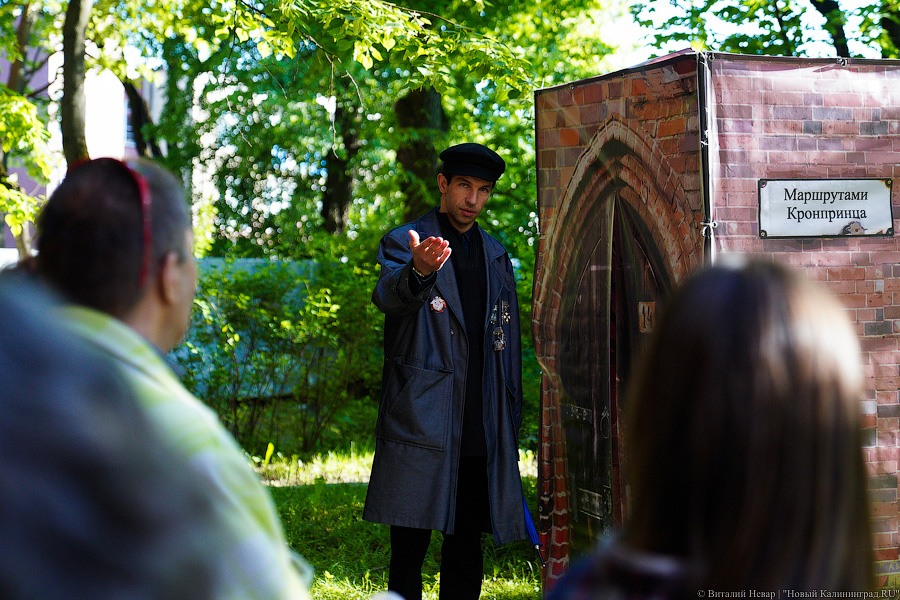 Это не экскурсия. Это живой спектакль-прогулка в жанре мокьюментари, который разворачивается в треугольнике бывшего Росгартена — современного Ленинградского района. Стороны этого треугольника – улицы Литовский вал, Фрунзе и 9 апреля. В основе спектакля — исследование кандидата исторических наук Ильи Дементьева «История квартала оборонительной казармы „Кронпринц“ в Калининграде», посвященное немецкому и советскому прошлому этой территории, а также ее настоящему.